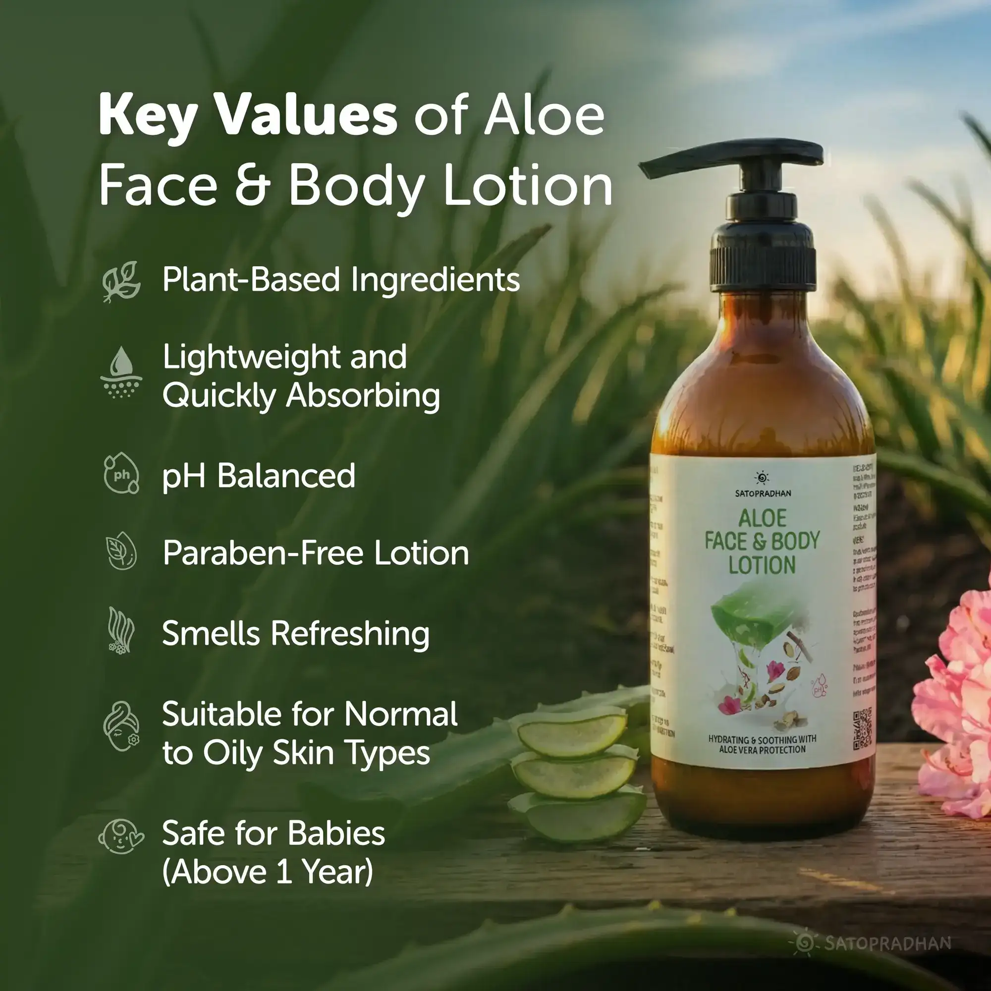 - Please note that while our Aloe Face & Body Lotion is formulated without harsh chemicals, we advise conducting a patch test before full use. In the rare event that any irritation arises, discontinue use.