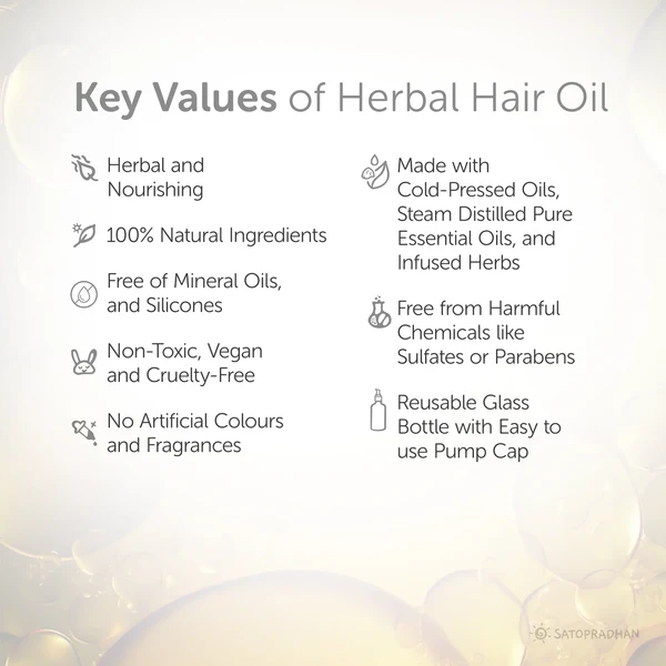 Satopradhan Herbal Hair Oil 200ml - Bakuchi, Kalonji & Rosemary Oil For Hair Growth & Thickness - Plant-Based & Eco-friendly hair oil.