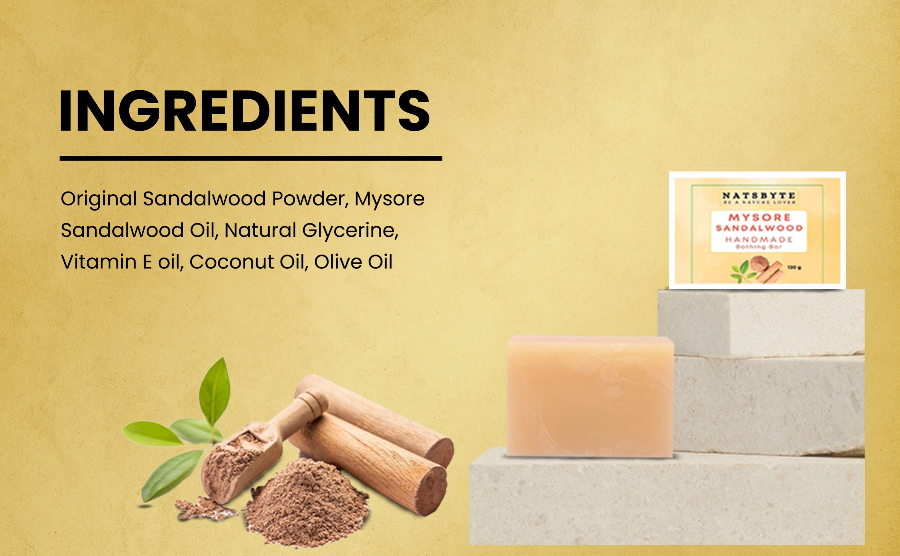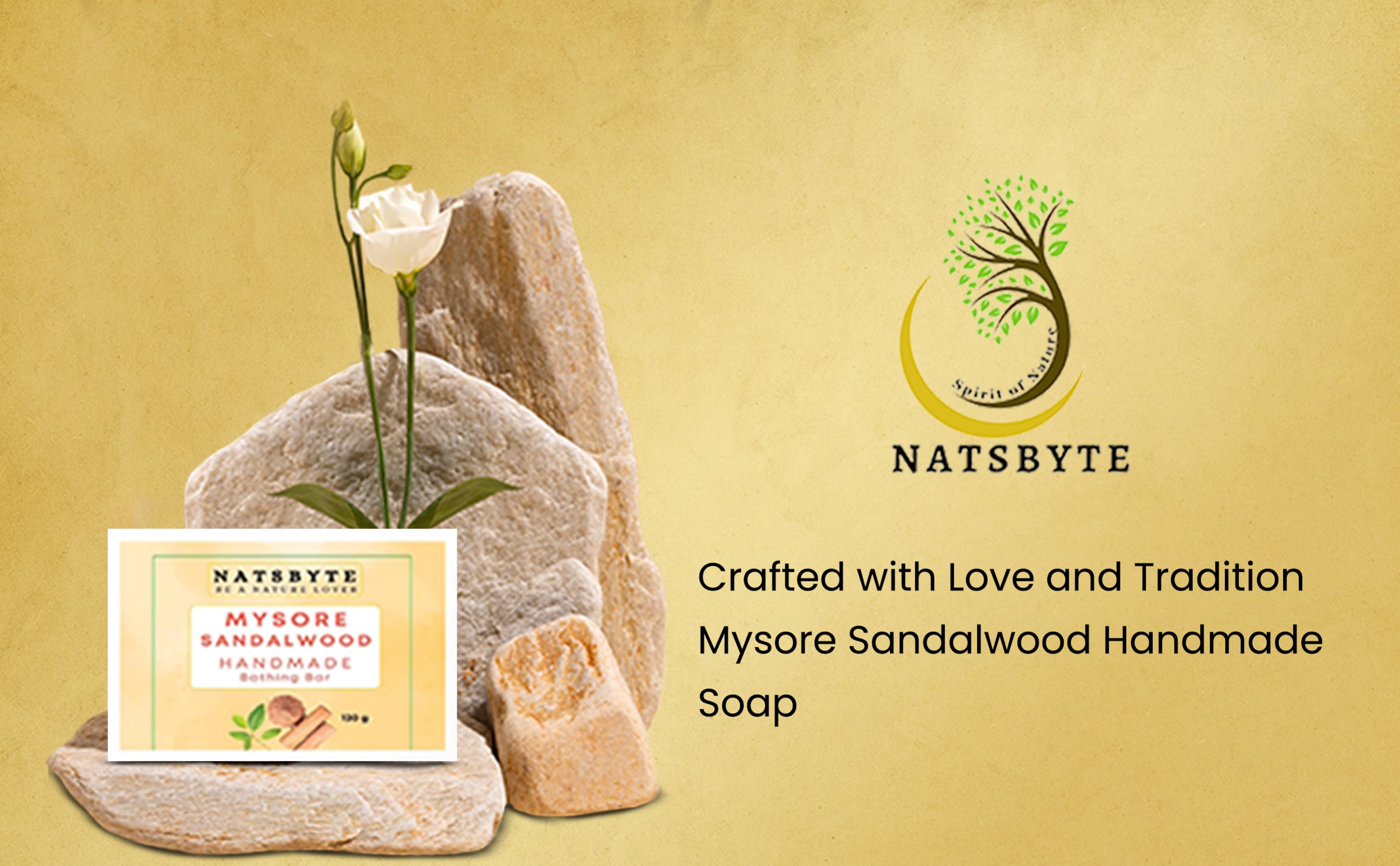 Experience the timeless essence of sandalwood with Natsbyte Handmade Mysore Sandalwood Soap, a luxurious Ayurvedic bath bar crafted to nourish, cleanse, and rejuvenate your skin naturally. Made with the richness of pure Mysore sandalwood, this handmade soap gently removes dirt, excess oil, and impurities while retaining your skin’s natural moisture balance. Known for its soothing and healing properties, sandalwood helps reduce acne, blemishes, and skin irritation, leaving your skin soft, smooth, and refreshed after every bath.