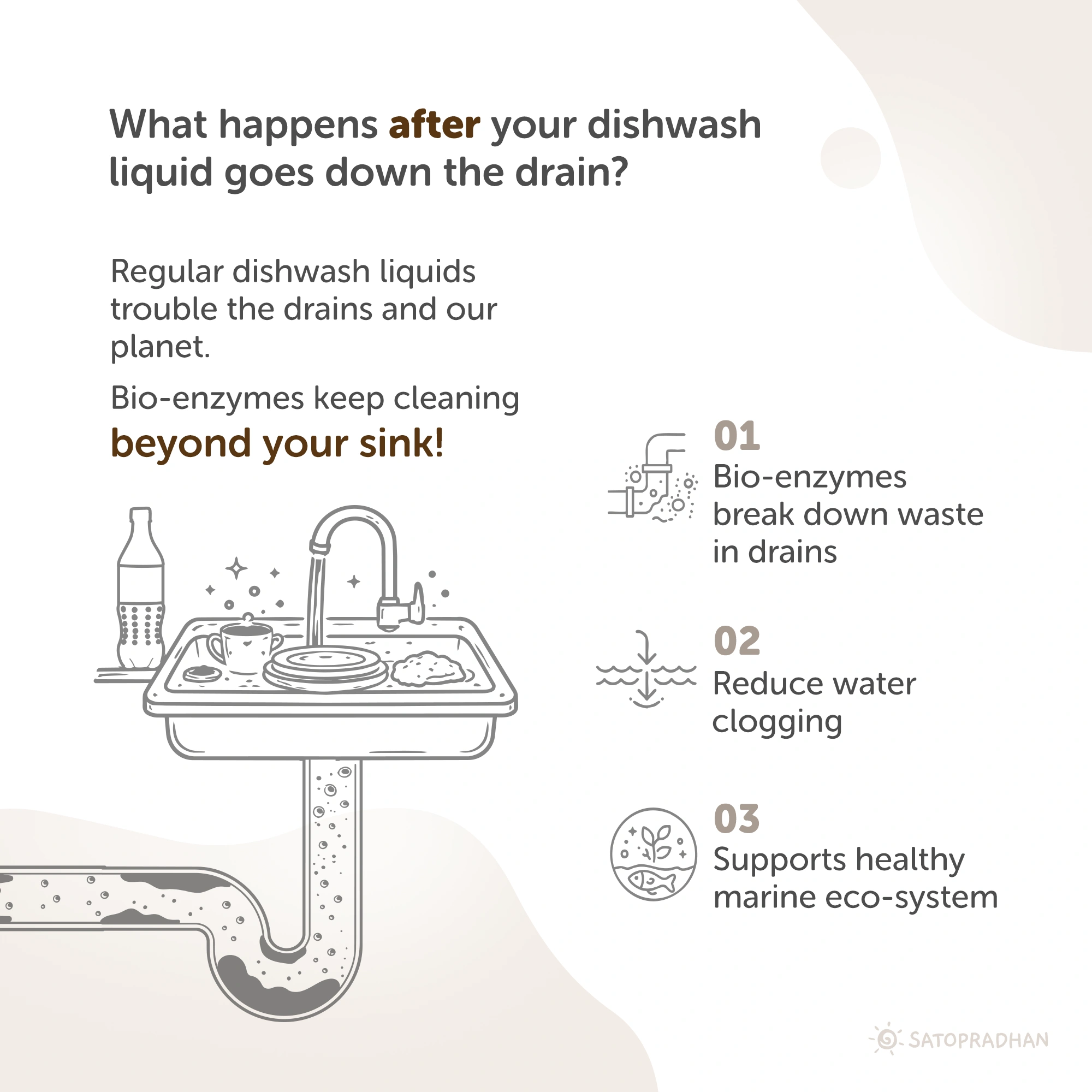 Residual Cleaning Action: The cleaning doesn't stop at your sink. As the formula flows down your drain, active bioenzymes continue working, breaking down organic waste in pipes and waterways. This ongoing action helps keep water bodies cleaner while remaining completely safe for aquatic life.
