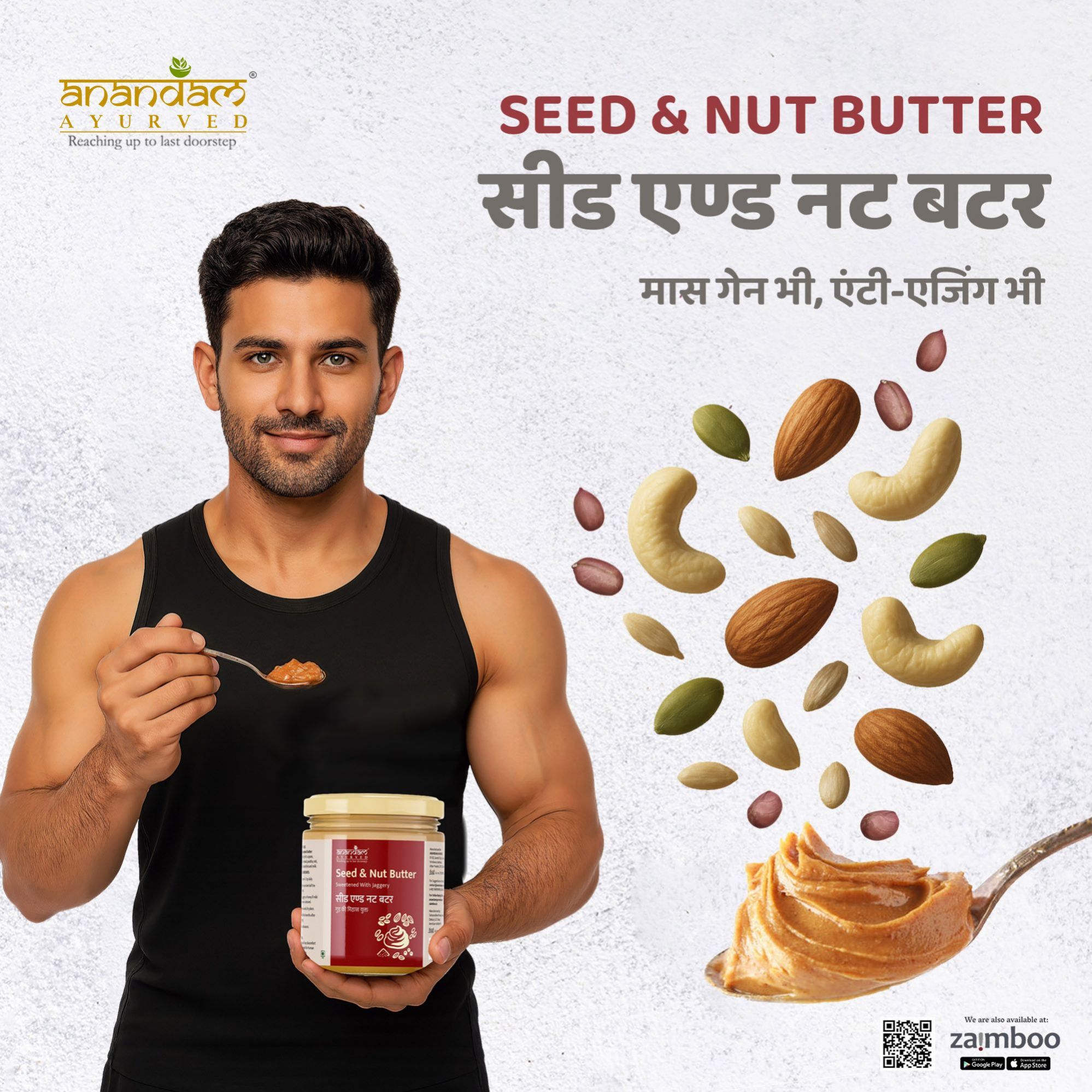 Product Highlights – Seed & Nut Butter (With Jaggery) ✅ 100% Natural – No Chemicals, Preservatives, Colours or Fragrance ✅ Rich in Protein, Healthy Fats, Vitamins & Minerals ✅ Sweetened with Natural Jaggery (No Refined Sugar) ✅ Made with Peanuts, Almonds, Cashews & 4 Types of Seeds ✅ Supports Muscle Gain, Stamina, Fertility & Nerve Health ✅ Perfect for Gym-Goers, Kids, & Health-Conscious Families ✅ Cruelty-Free & Vegan-Friendly ✅ Made in India with Ayurvedic goodness