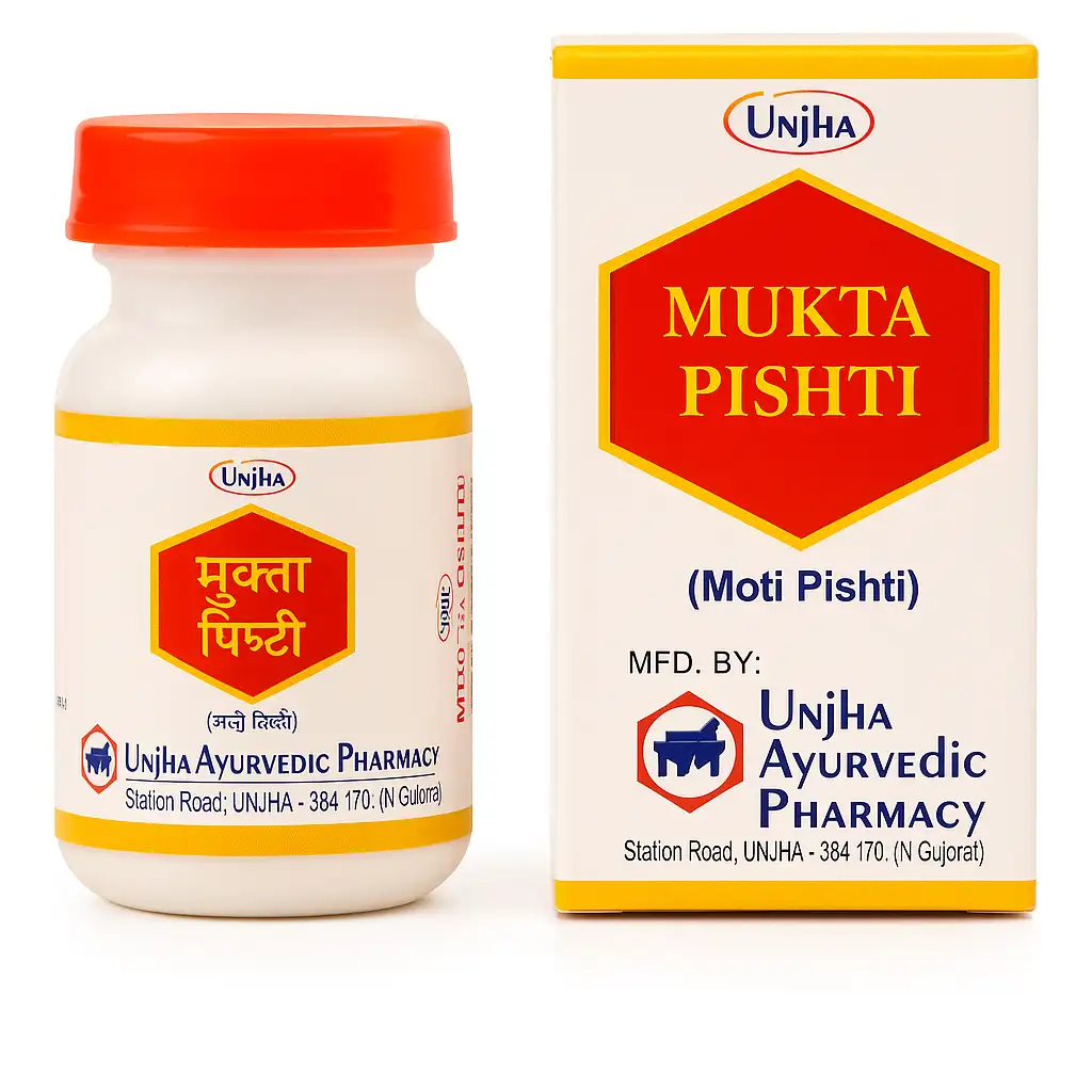 * **Purified & Incinerated Cowrie Shell Bhasma**: Classical Ayurvedic formulation prepared from Kapardika (cowrie shells) through shodhana and marana process. * **Supports Relief from Acidity & Hyperacidity**: Traditionally used to reduce excess gastric secretions and improve digestion. * **Helps Balance Pitta Dosha**: Cooling, alkaline nature helps neutralize aggravated pitta. * **Promotes Strength & Rejuvenation**: Used in general debility, calcium deficiency, and weak digestion-related conditions. * **Quality Assured by Unjha**: Prepared using authentic Ayurvedic methods with stringent quality control.