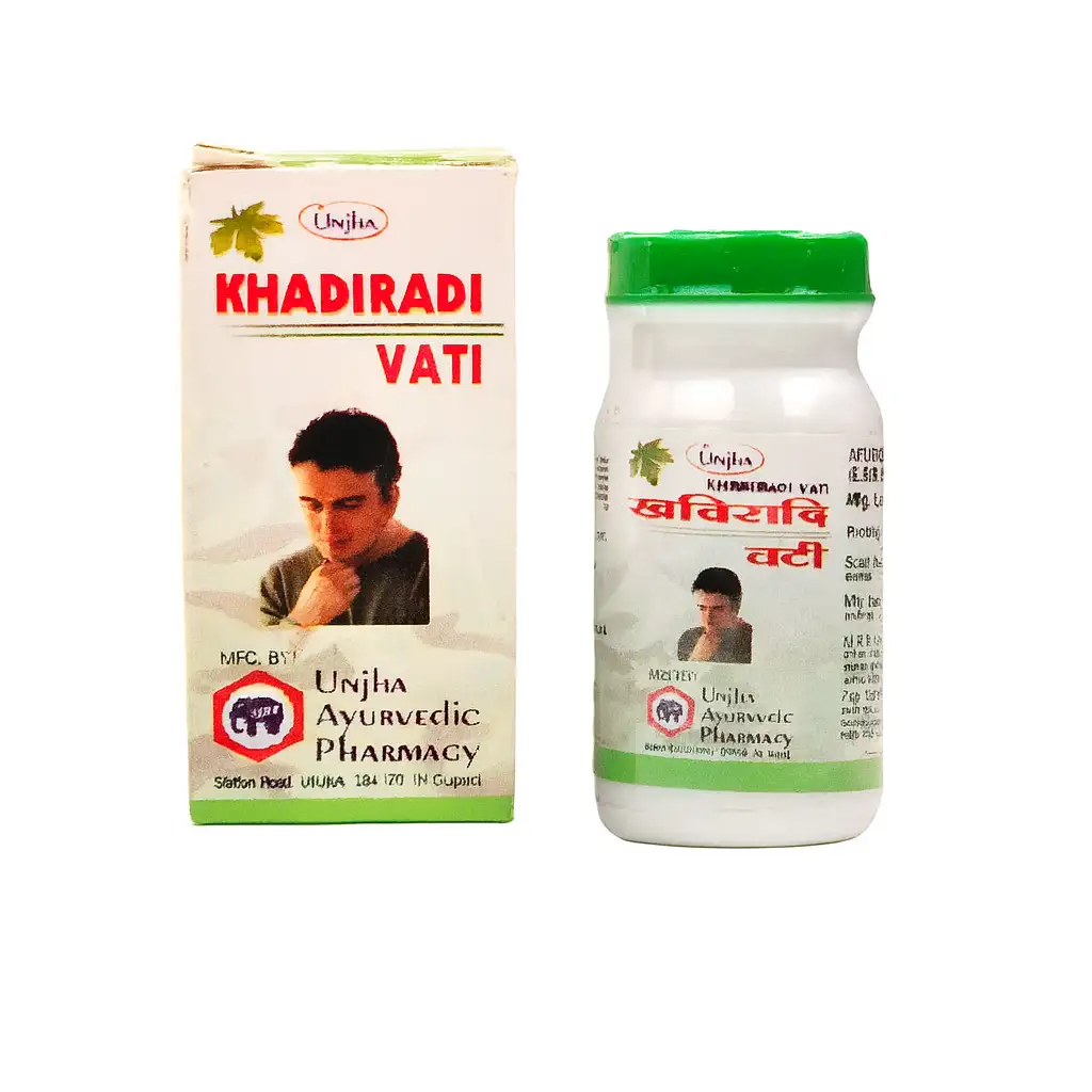 Traditional Ayurvedic Formula – Khadiradi Vati is a classical preparation mentioned in Ayurvedic texts, valued for maintaining oral and throat hygiene. Natural Herbal Blend – Contains Khadira, Javitri, Kapoor, Supari, and other time-tested ingredients. Supports Fresh Breath & Oral Cleanliness – Helps in keeping the mouth fresh and maintaining daily oral care. Convenient Tablet Form – Easy to carry and consume anytime for throat and oral comfort. Trusted by Generations – Manufactured by Unjha Ayurvedic Pharmacy, known for authentic classical preparations.