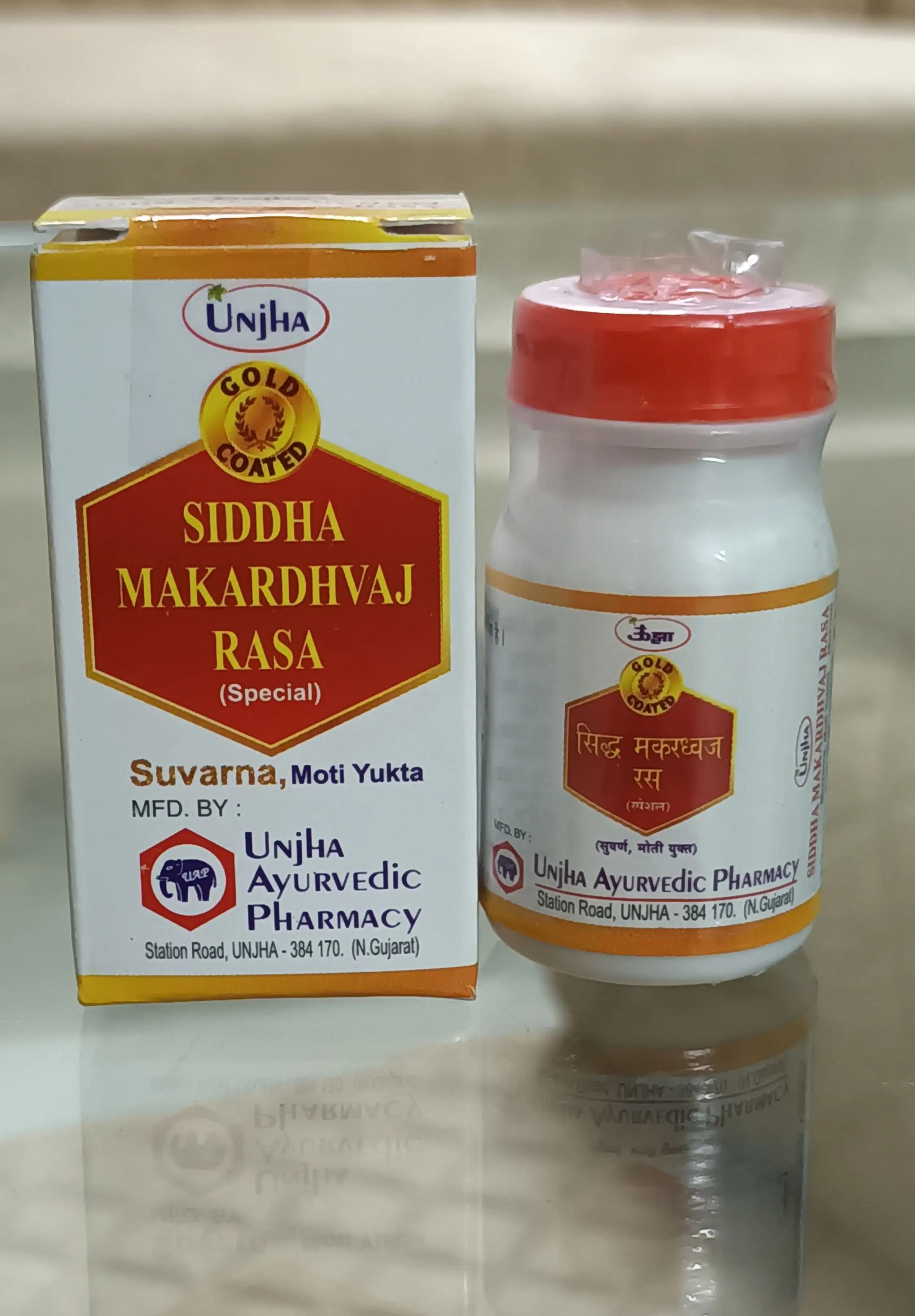 * **Premium Ayurvedic Gold-Coated Tablets** – Made with Suvarna Bhasma, Moti Bhasma, and other classical ingredients for overall wellness. * **Vitality & Strength Support** – Traditionally used in Ayurveda to promote stamina, energy, and resilience. * **Immunity & Wellness** – Supports the body’s natural defense system and general well-being. * **Authentic Classical Preparation** – Prepared as per traditional Ayurvedic methods for optimum efficacy. * **Trusted Unjha Quality** – From Unjha Ayurvedic Pharmacy, a heritage brand known for purity and authenticity.