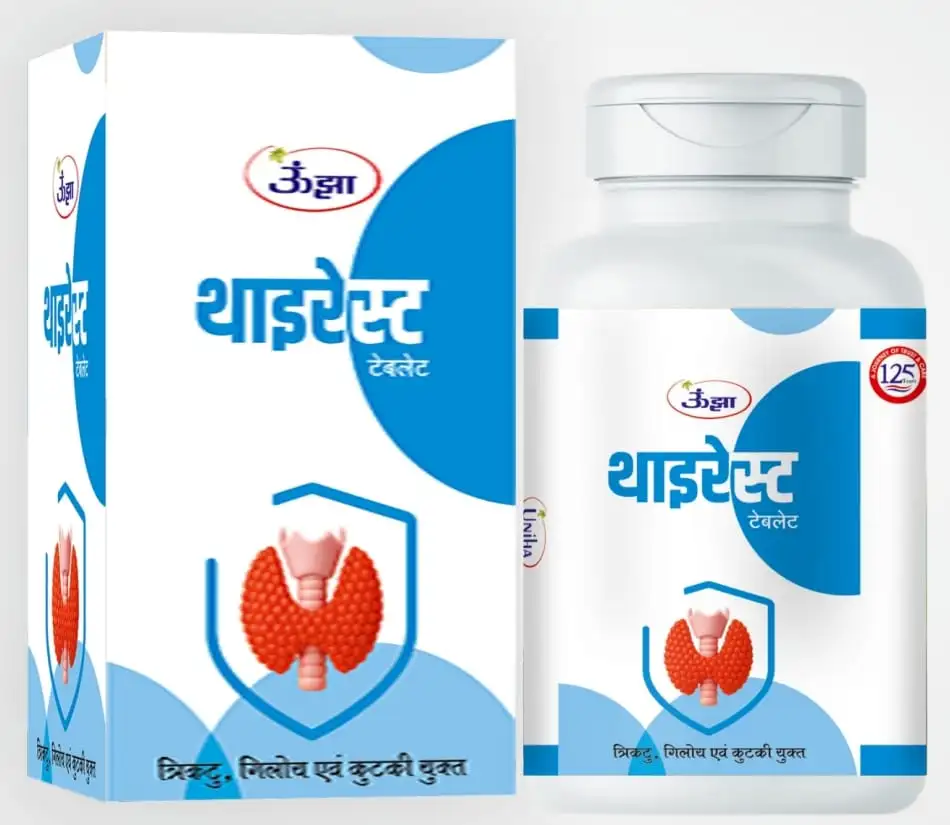 UNJHA Thyrest Tablet is a classical Ayurvedic formulation designed to support healthy thyroid function and overall metabolic balance. In Ayurveda, imbalance of Agni (digestive and metabolic fire), Kapha dosha aggravation, and improper tissue metabolism are considered important contributing factors in thyroid-related functional disturbances. Thyrest Tablet is formulated with time-tested Ayurvedic herbs traditionally used to help maintain hormonal harmony, metabolic efficiency, and glandular health.