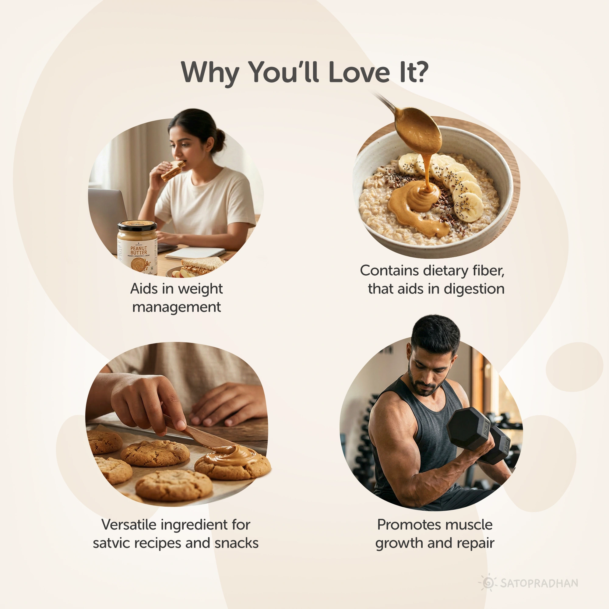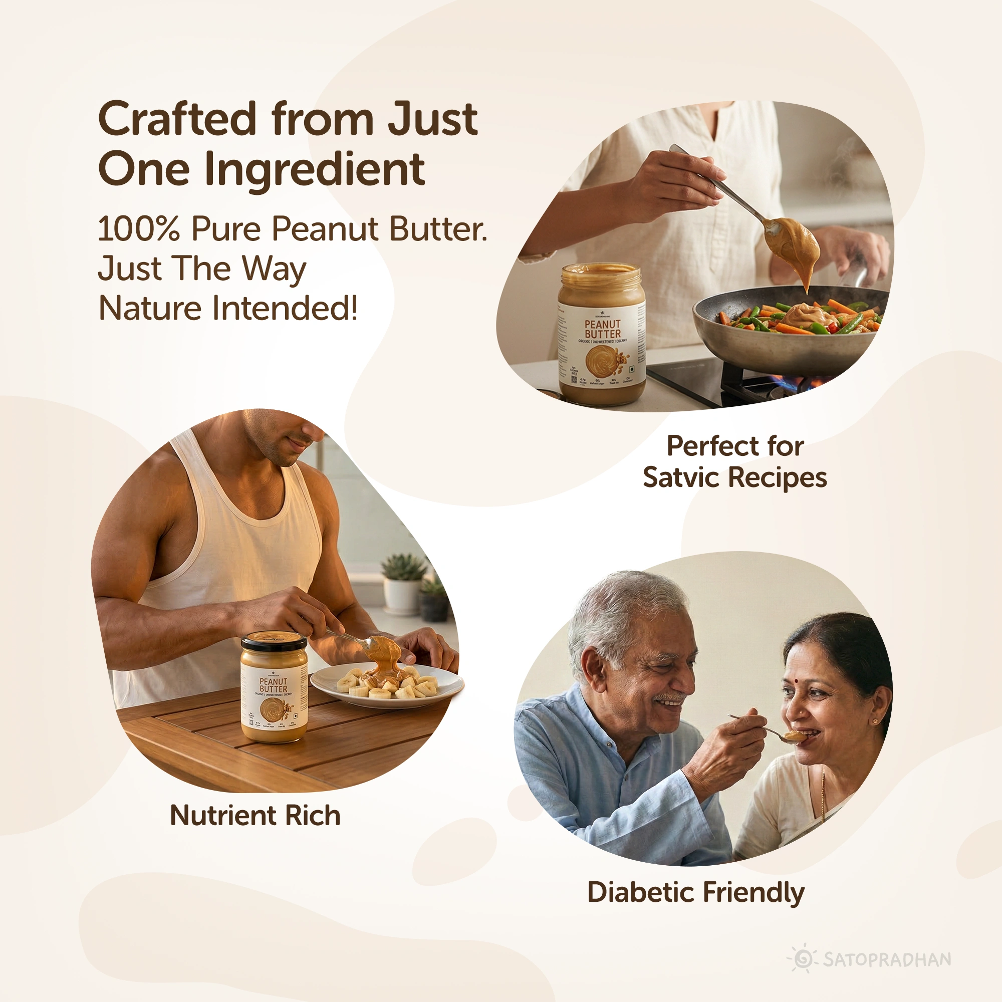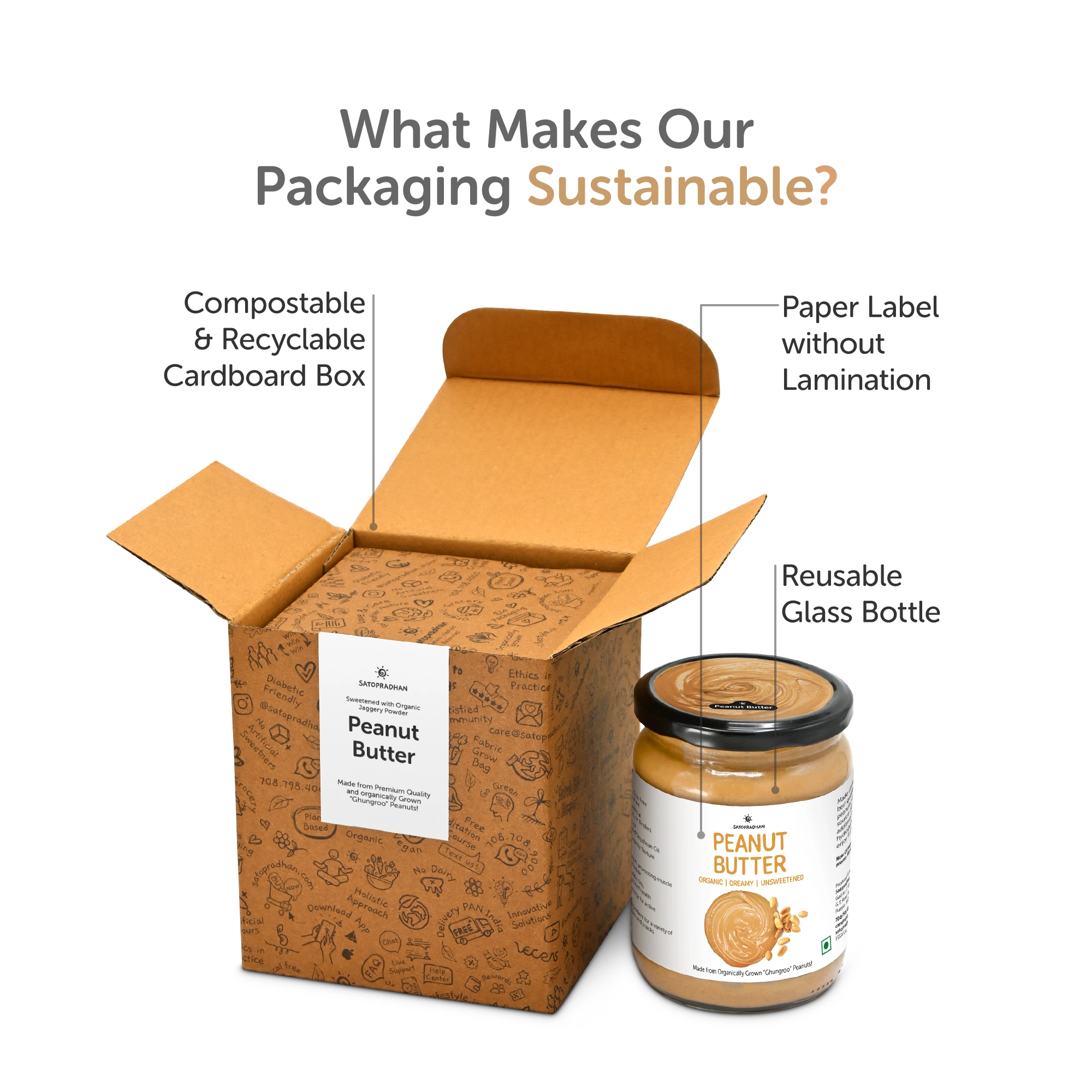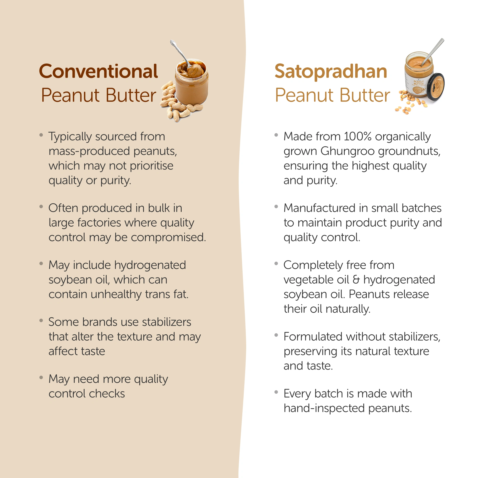 So we made a peanut butter with pure, high-quality ingredients, packed in a reusable glass jar, keeping both your health and the planet in mind. Just the Satopradhan way!
